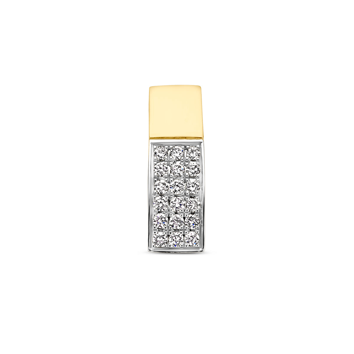 14k Bi-color geel- en witgouden hanger uitgevoerd met diamanten. De hanger heeft een afmeting van 11.5x4mm.