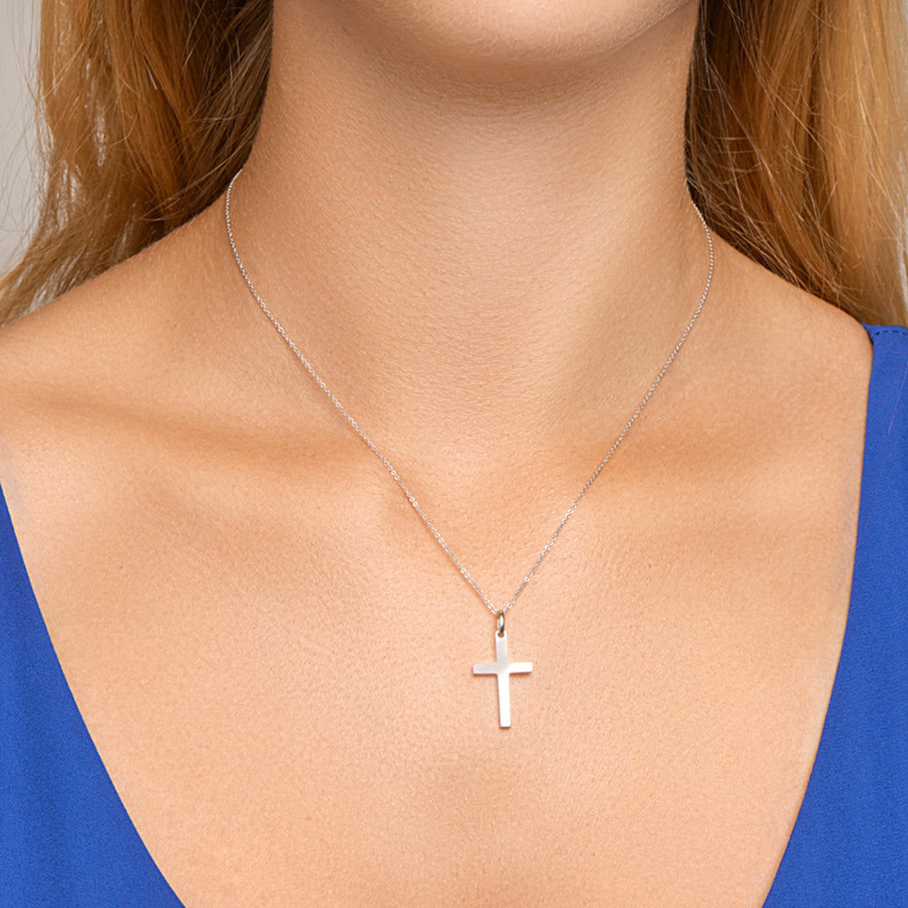 Gerhodineerd zilveren hanger in de vorm van een kruis.