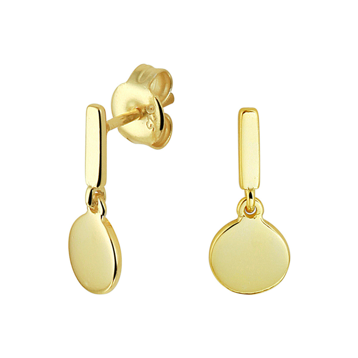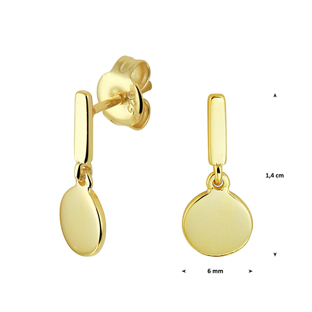 Trendy geelgoud op zilveren oorhangers met een balkje en een rondje. Tip: Leuk om kado te geven! Zie je ze al stralen? Geen garantie op plating.