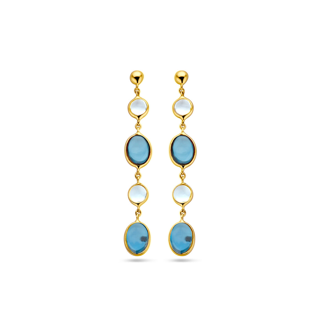 Oorhangers london blue en blauw topaas 14k geelgoud