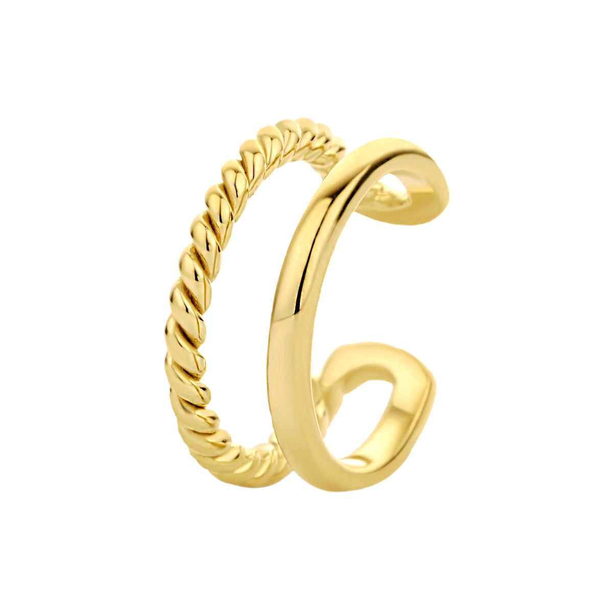 Geelgoud op 925 zilveren earcuff. De earcuff heeft een afmeting van 11x3mm en wordt per stuk verkocht. Geen garantie op plating.