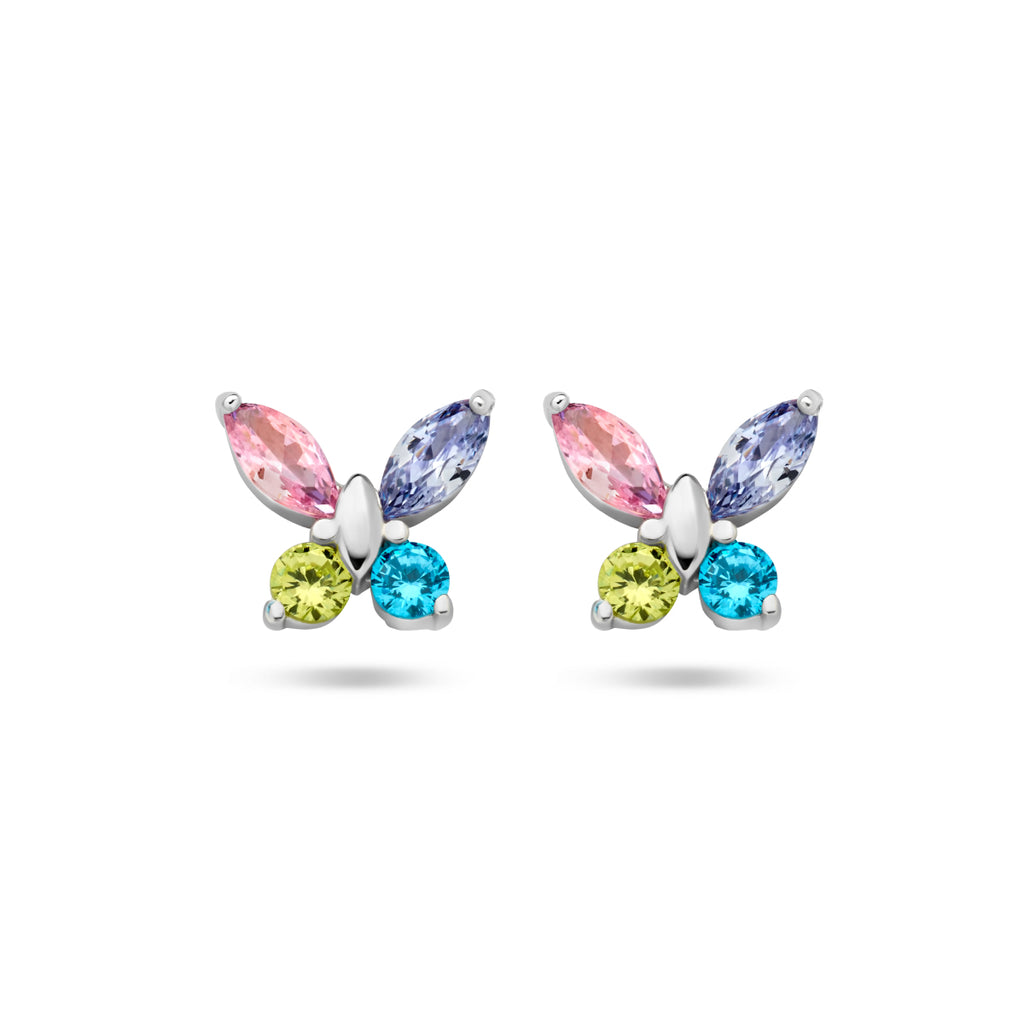 Oorknoppen vlinder meerdere kleuren zirkonia zilver gerhodineerd