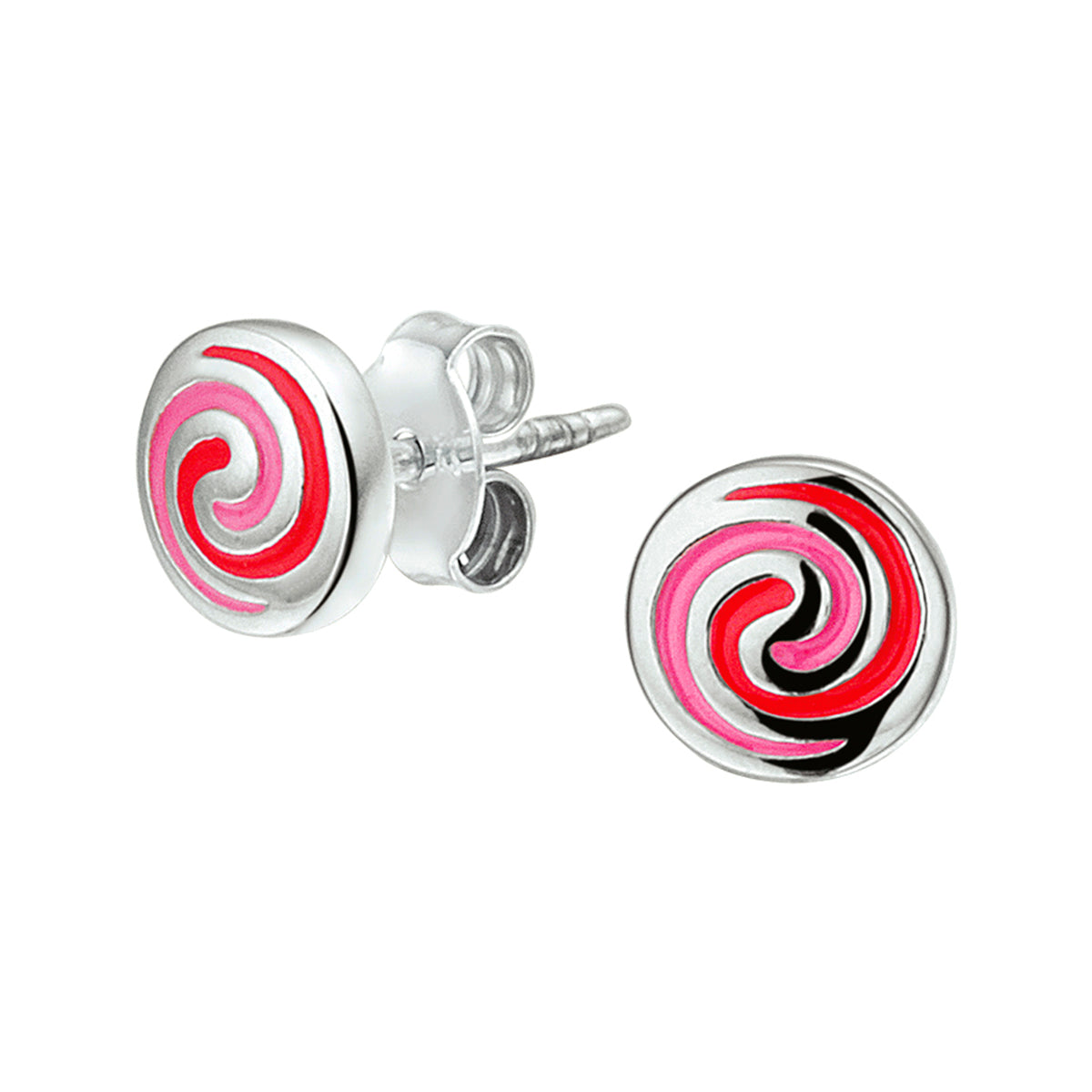 Deze vrolijk gekleurde oorknoppen zijn uitgevoerd in gerhodineerd zilver en emaille in rood en roze. De oorknoppen hebben een diameter van 6.5mm en hebben een poli afwerking. De oorknoppen zijn te combineren met bijpassende sieraden uit onze collectie om zo een schattige set te maken!.