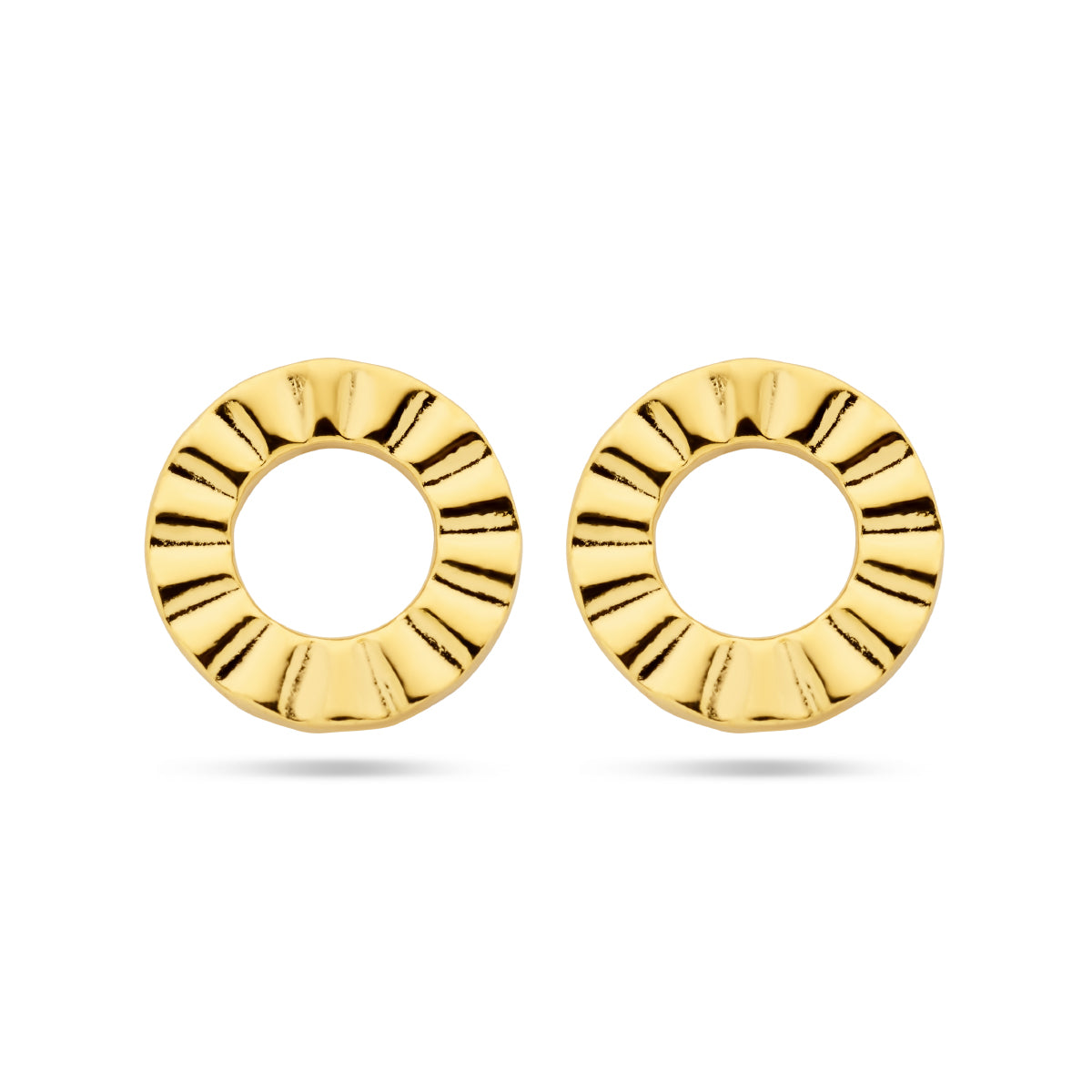 Geelgoud op 925 zilveren oorknoppen in de vorm van een open rondje. Het rondje heeft een diameter van 10mm. Geen garantie op plating.