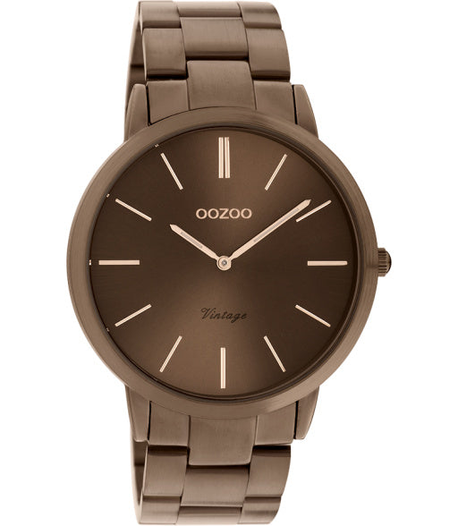 Dit horloge beschikt over een quartz uurwerk en een mooie metalen band. De wijzerplaat is bruin met rosé kleurige wijzers. Het glas is gemaakt van een sterk mineraalglas. Er zit één jaar garantie op het uurwerk.