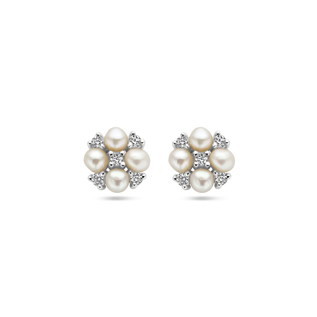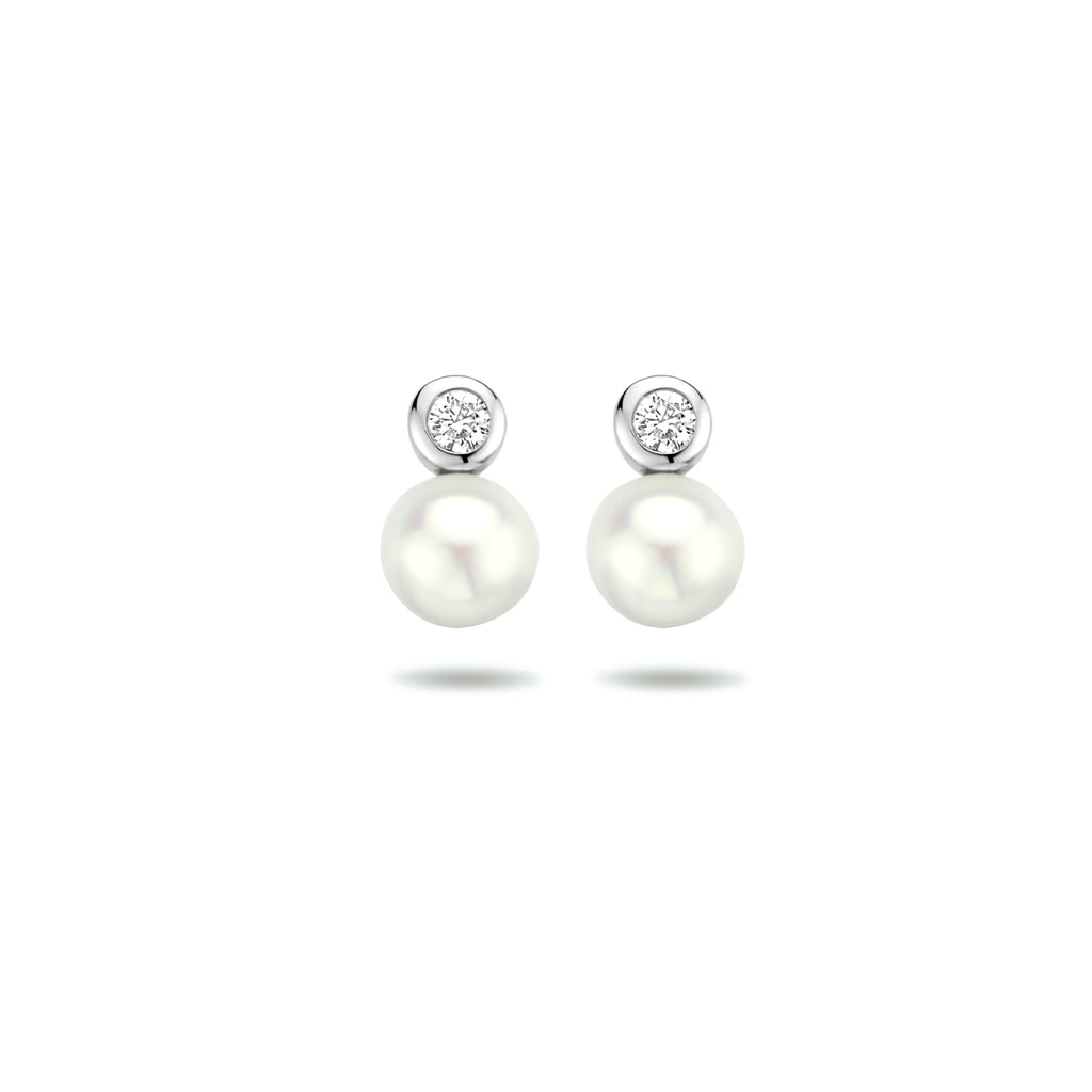Oorknoppen parel en zirkonia zilver gerhodineerd