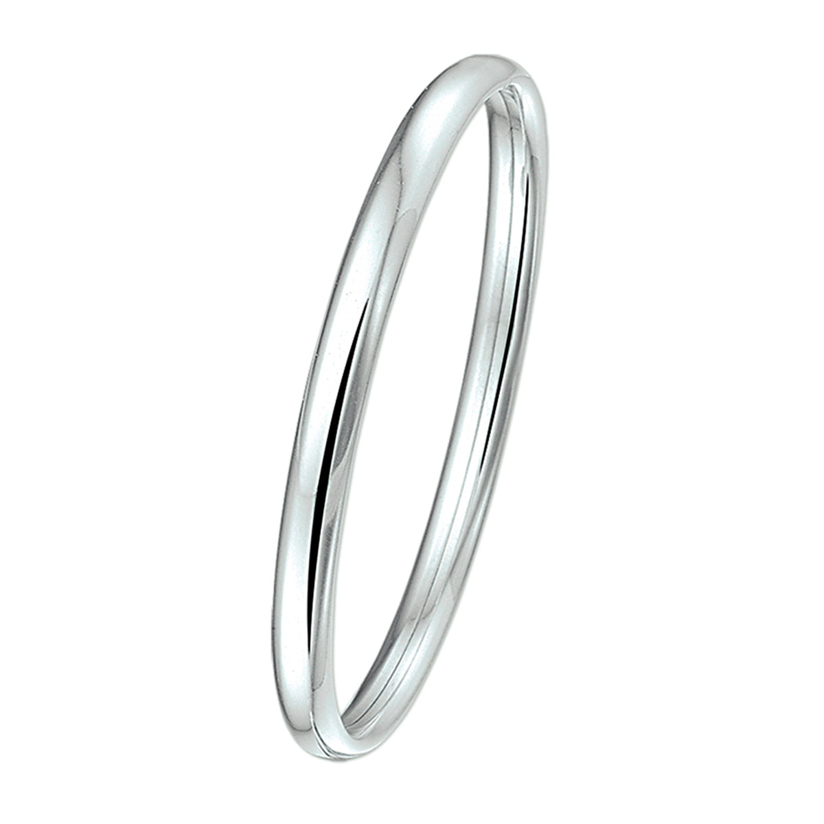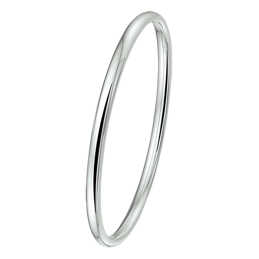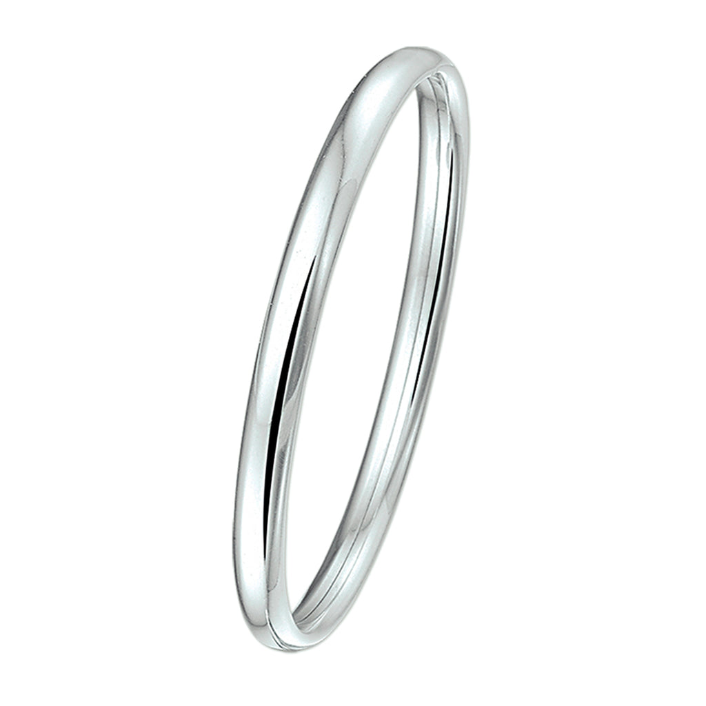 925 Zilveren bangle voor kinderen uitgevoerd met een ovale buis en een stevige dop-sluiting. De bangle heeft een breedte van 4mm. Door het simplistische strakke design is deze bangle perfect te combineren met andere sieraden.
