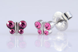 Chirurgisch stalen schietoorbellen vlinder met een M/K kleur. De oorbellen hebben een diameter van 6 mm.